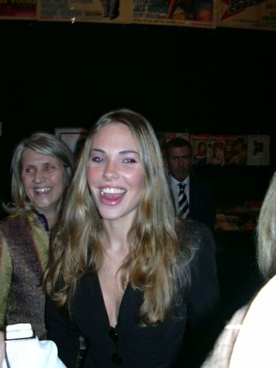 Alba (la madre di Ale) posa con Giuseppe davanti alla teca delle Sofia Dolls |